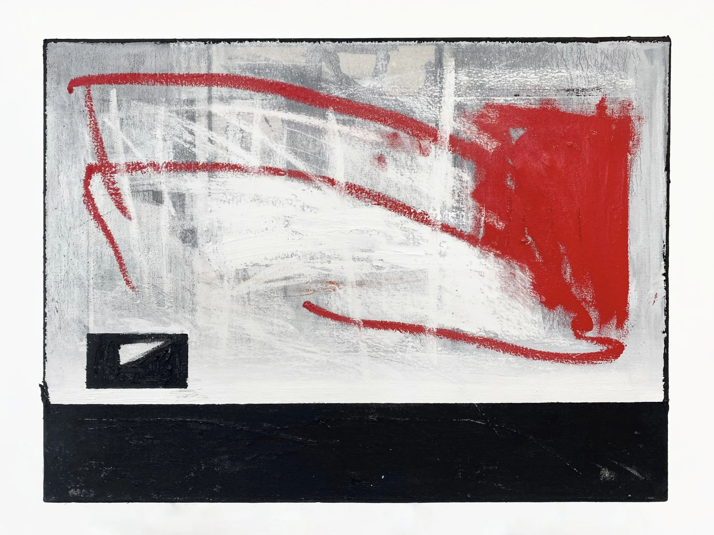 Oil, oil stick, acrylic, graphite, coloured pencil on linen